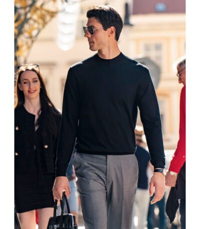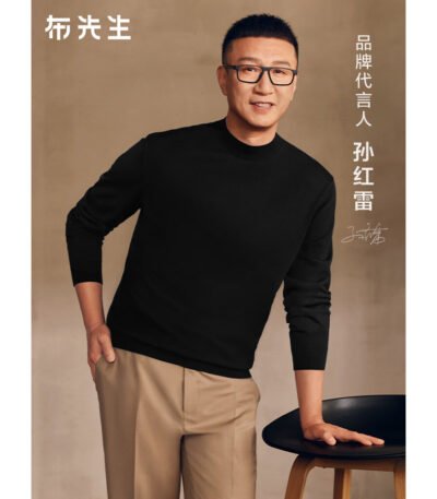 布先生明星同款秋冬季可机洗纯羊毛衫男士毛衣 钢琴黑 L-175