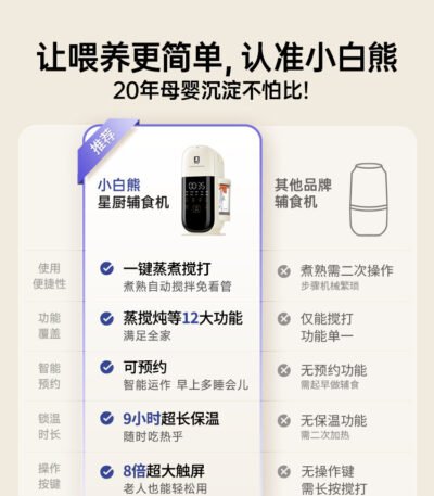 小白熊星厨宝宝辅食机婴儿打米糊蒸煮搅打一体料理机打泥多功能