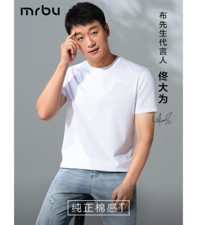 布先生春夏季短袖T恤男士纯棉小白T纯色内搭打底衫 白色 S(165)