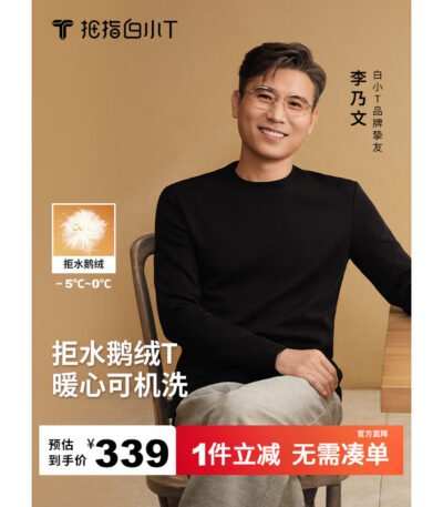 拇指白小T【可机洗拒水鹅绒T】秋冬男女羽绒保暖T恤上衣打底衫 男墨黑 XL