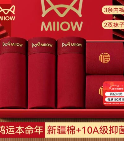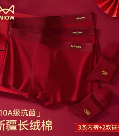 猫人红内裤男本命年马年鸿运纯棉短裤男红袜子组合装袜子2双+内裤3条
