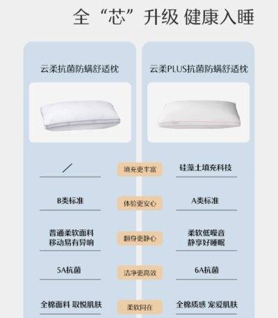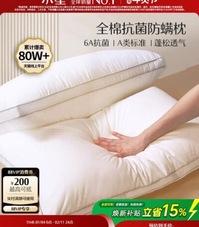 水星家纺枕头枕芯全棉抗菌防螨单人呵护颈椎软枕枕头芯低枕可水洗