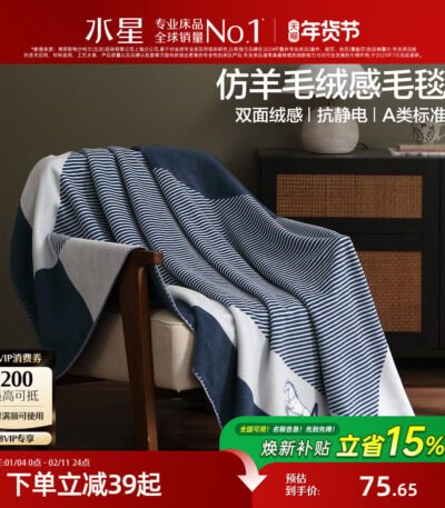 水星家纺毛毯A类抗静电可水洗办公室午休毯子保暖空调盖毯沙发毯
