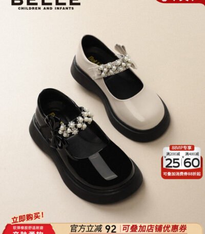百丽童鞋女童公主鞋2025秋冬新款软底单鞋儿童黑色英伦风大童皮鞋