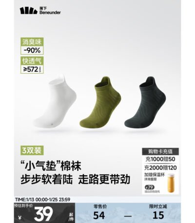 蕉下(beneunder)抗菌消臭棉柔袜25新款夏季透气休闲袜男女学生CT648 沁柔白+屿川绿+椰炭灰 短袜 3双 M (40-45码)