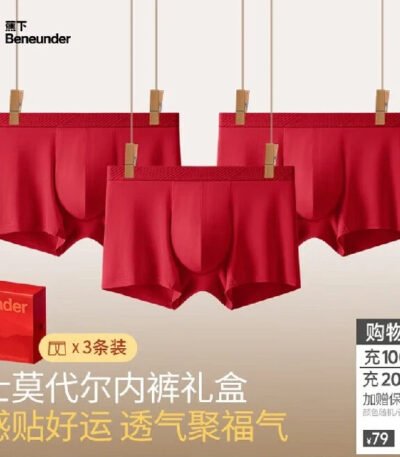 蕉下(beneunder)红色内裤男士本命年马年莫代尔抗菌内裤衩四平角裤礼盒 骐骥红