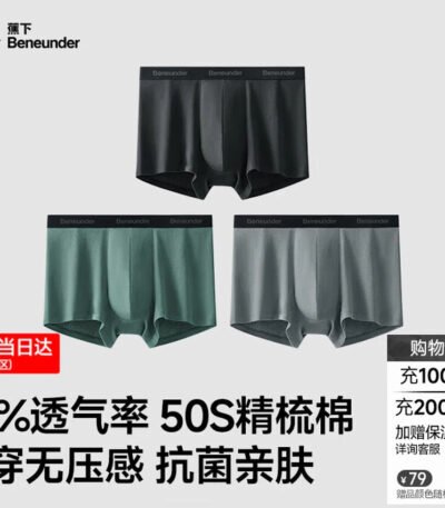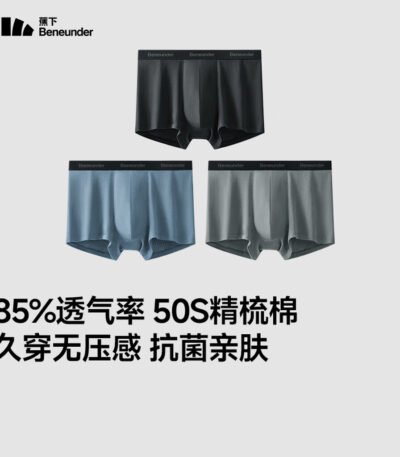 蕉下(beneunder)透气男士内裤无痕底裆抗菌透气平角裤棉质短裤头四角裤三条装 漫暮黑+灰榄绿+浅屿灰 3条 M