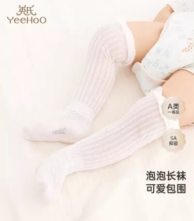 英氏新生婴儿袜子夏季薄款女宝可爱过膝长袜新款夏天宝宝白色袜子