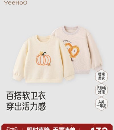 英氏男童加绒卫衣女童宝宝春秋新款儿童圆领长袖春季保暖套头上衣