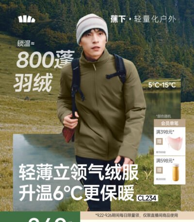 蕉下立领夹克气绒服可机洗户外防风保暖似羽绒秋冬季棉服外套男款