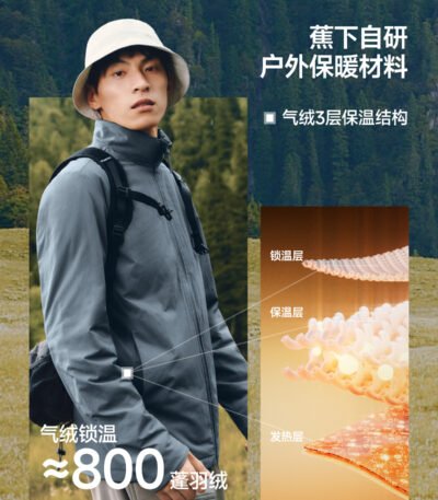 蕉下男士加厚连帽气绒服户外秋冬保暖似羽绒休闲防寒外套面包棉服