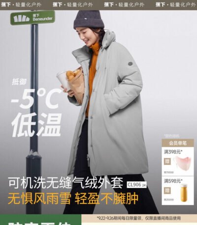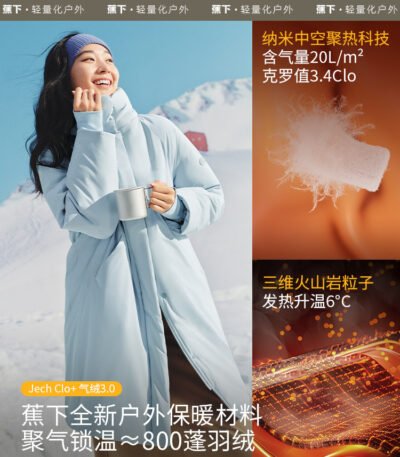 蕉下泡芙气绒服长款女冬夹棉棉服保暖似羽绒防寒无缝派克大衣外套