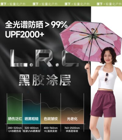 蕉下大花双层防晒伞BM398晴雨两用遮阳伞女黑胶防紫外三折太阳伞