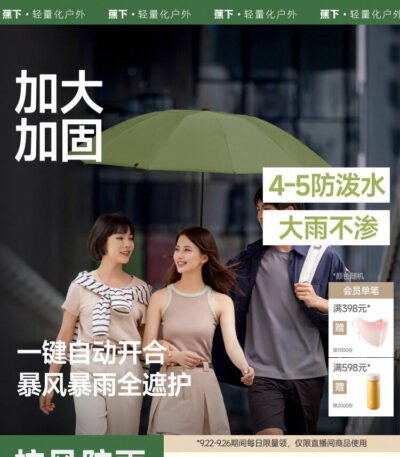 蕉下三折自动伞雨伞男女情侣加大加厚加固抗风暴反向折叠雨伞