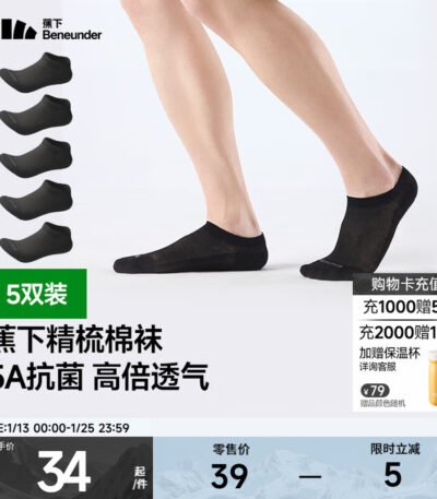 蕉下(beneunder)棉质抗菌短袜亲肤绵柔透气暑期出行出差旅游可日抛男女学生GP661 漫暮黑 5双 S 码数 34-39