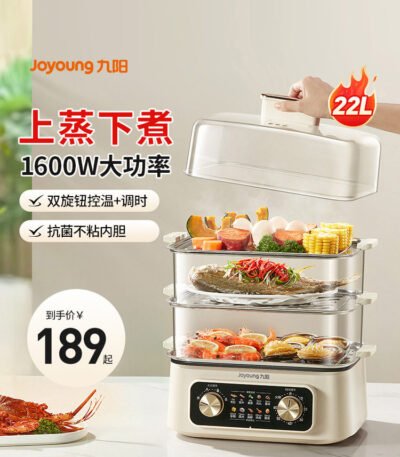 九阳电蒸锅家用多功能三层蒸煮炖一体锅多层早餐机蒸箱大容量