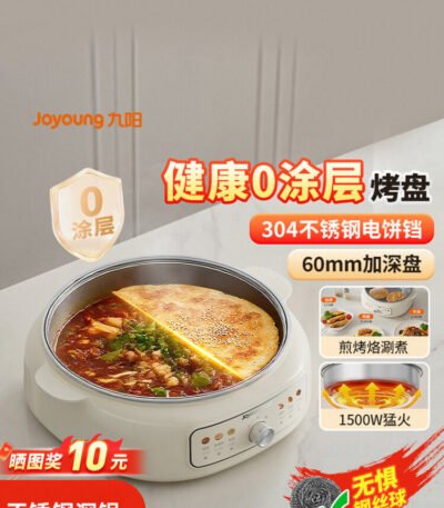 九阳电饼铛家用0涂层不锈钢加深电火锅煮锅烙煎饼一体锅2025新款