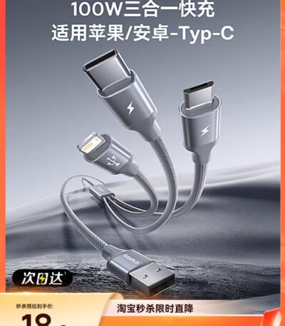 倍思数据线三合一充电器线车载一拖三快充三头适用苹果17华为安卓16Typec手机多头三线合一多功能USB-A充电