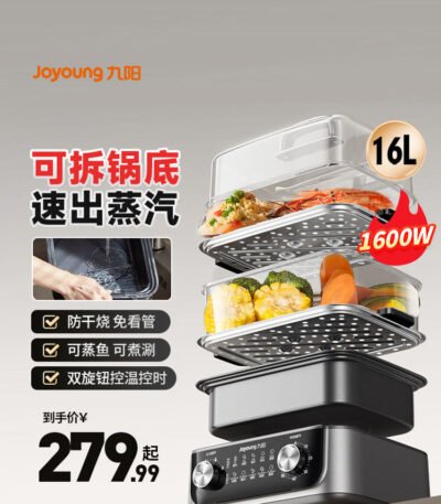 九阳电蒸锅家用2024新款多功能多层大容量蒸煮一体锅可拆官方正品