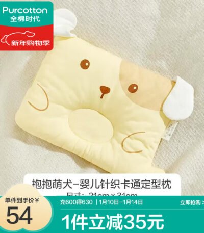 全棉时代婴儿定型枕0-1岁新生儿宝宝头型调节枕头四季通用透气婴儿枕 【抱抱萌犬】21×31cm