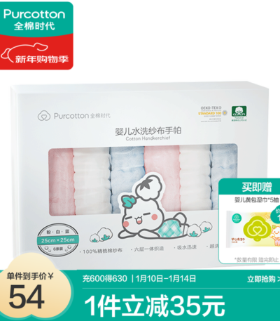 全棉时代100%棉婴儿棉柔巾宝宝洗脸巾超柔一次性干湿擦脸乳霜巾成人可用 80抽 24包 【经典款】