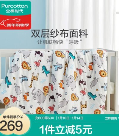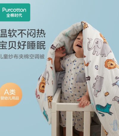 全棉时代 婴儿被子儿童纱布夹棉被100%纯棉婴儿宝宝棉纱被四季通用盖被 【萌趣小动物 21-30℃】120×150cm