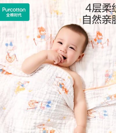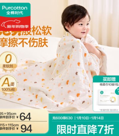 全棉时代(PurCotton)婴儿纱布浴巾纯棉宝宝新生儿童浴巾软吸水 【限时补贴 2条装】 四层柔纱 奇妙云端 95cm