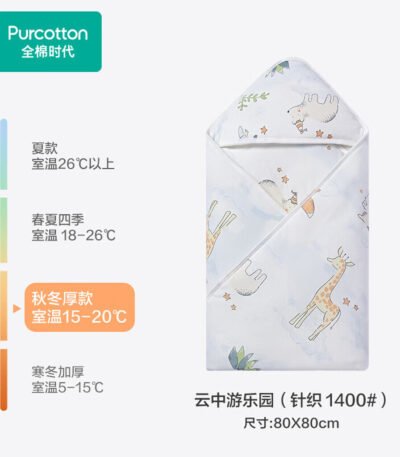 全棉时代(PurCotton)婴儿包被纯棉宝宝包被产房襁褓被子包单巾睡袋保温透气秋冬 【秋冬款】云中游乐园 80×80cm