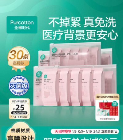 全棉时代一次性内裤纯棉孕产妇月子高腰旅行出行待产日抛免洗女士