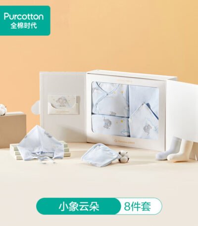 全棉时代婴儿礼盒见面礼新生宝宝周岁满月礼出生礼物初生用品高端四季59码 【四季款-8件】小象云朵 (手提袋) 73cm 【适合6-9个月】