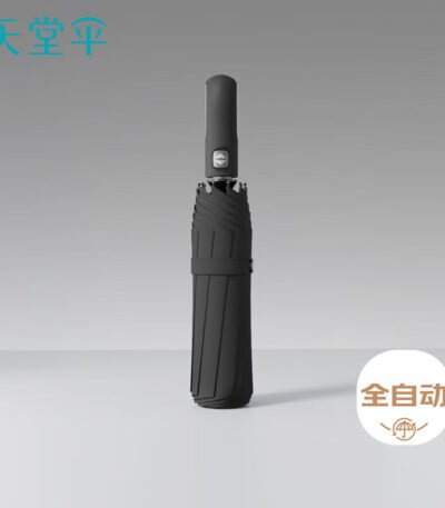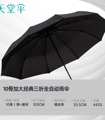 天堂 全自动雨伞三折 10骨加固一键开收易甩干简约晴雨伞 乌木黑