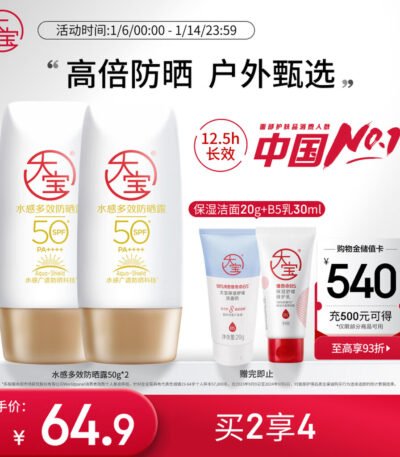 大宝水感多效防晒露50g*2 SPF50+高倍防晒霜防水防汗男女护肤新年礼物