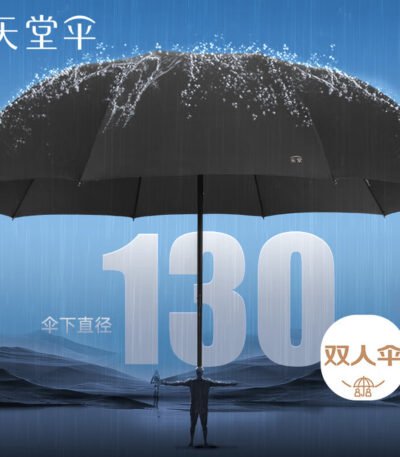 天堂 双人雨伞三折 雨伞加大加固三折晴雨伞全钢十骨大伞 乌木黑