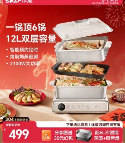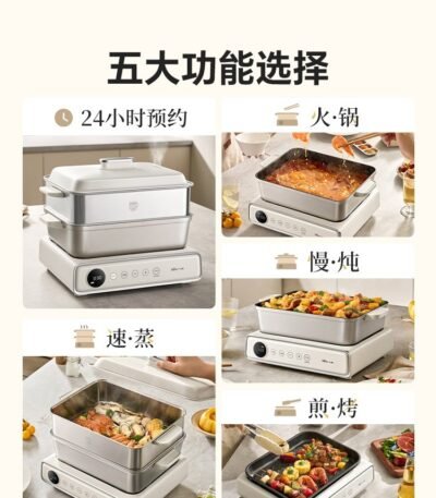 小熊叠叠分体多功能料理锅家用电火锅烤肉一体烤涮电蒸锅多功能锅