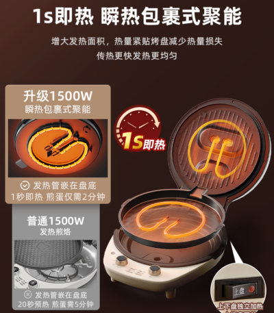 小熊可拆洗电饼铛家用烹饪机双面加热加深煎饼锅烙饼锅电饼档煎锅