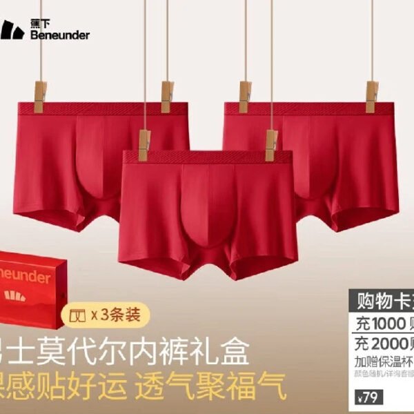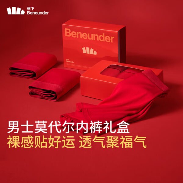 蕉下(beneunder)红色内裤男士本命年马年莫代尔抗菌内裤衩四平角裤礼盒 骐骥红