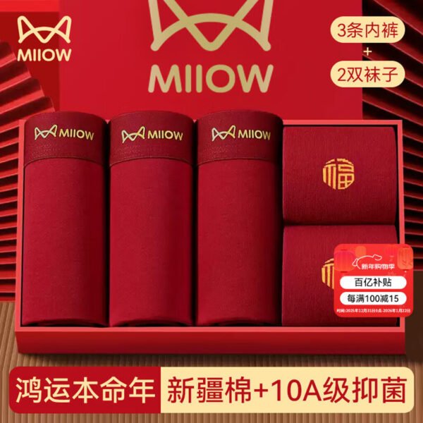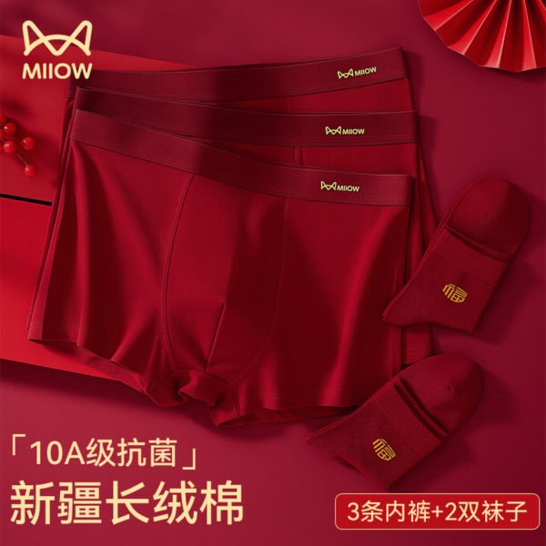 猫人红内裤男本命年马年鸿运纯棉短裤男红袜子组合装袜子2双+内裤3条