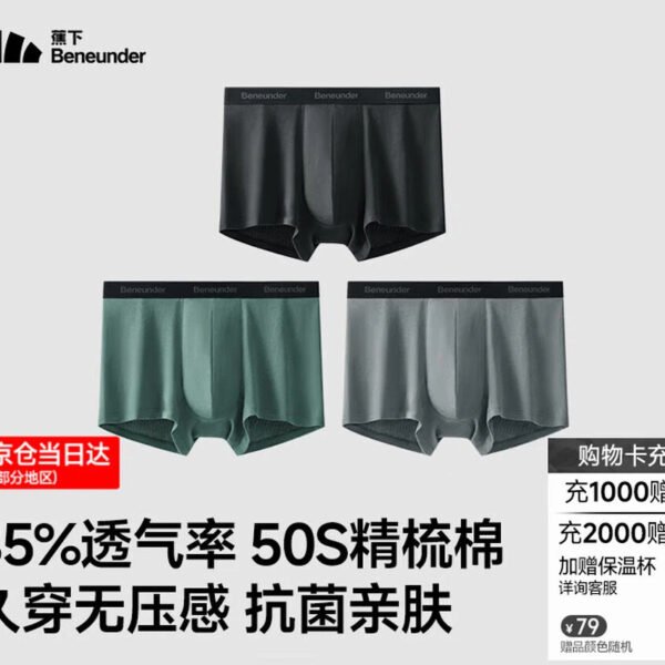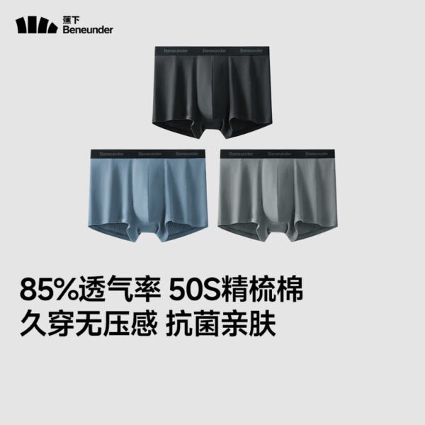 蕉下(beneunder)透气男士内裤无痕底裆抗菌透气平角裤棉质短裤头四角裤三条装 漫暮黑+灰榄绿+浅屿灰 3条 M