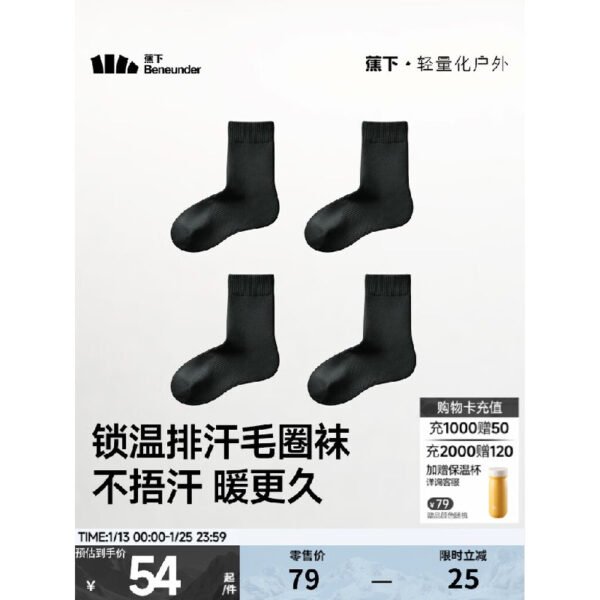 蕉下(beneunder)男女士中筒袜亲肤特护保暖秋冬吸汗保温百搭学生 漫暮黑 中筒 4双 M (40-45)
