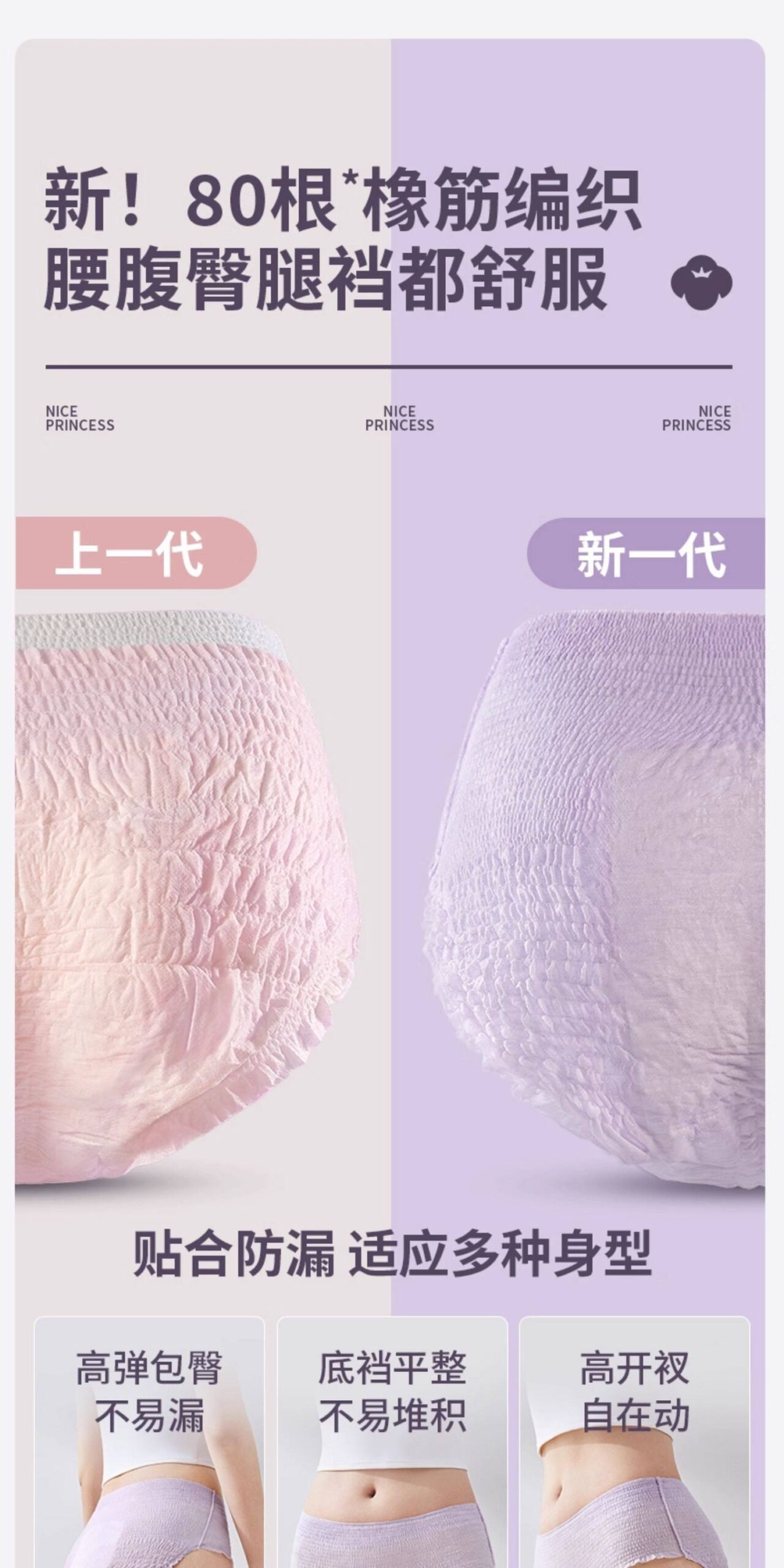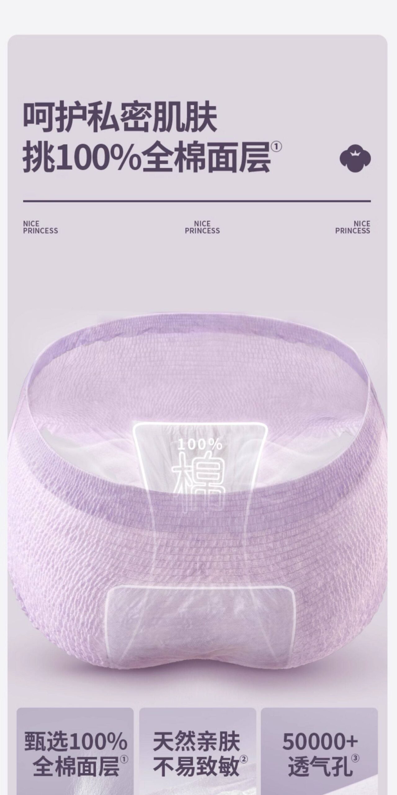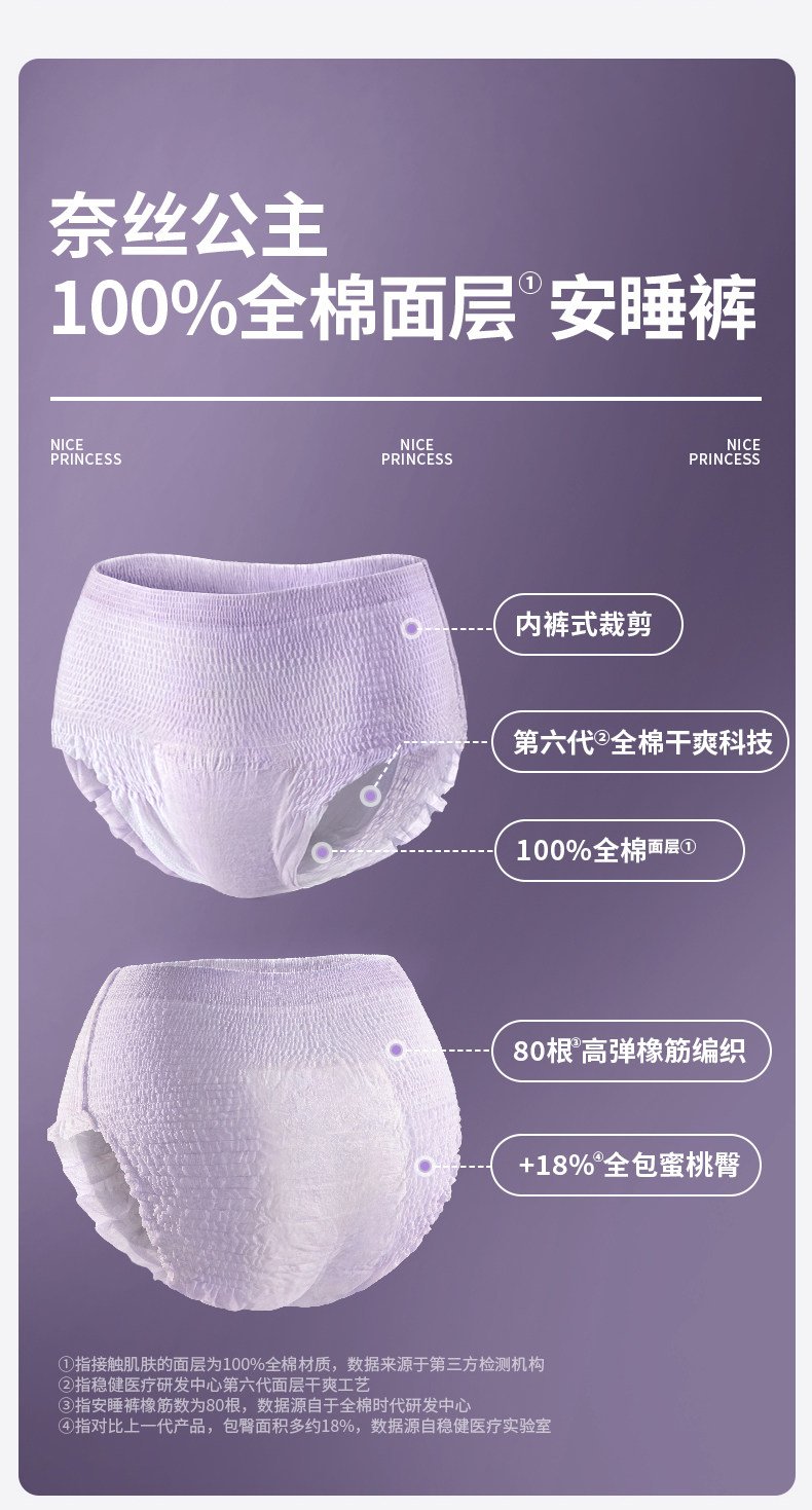 【先试后买】全棉时代奈丝公主裤型卫生巾夜用安心裤安睡裤2条