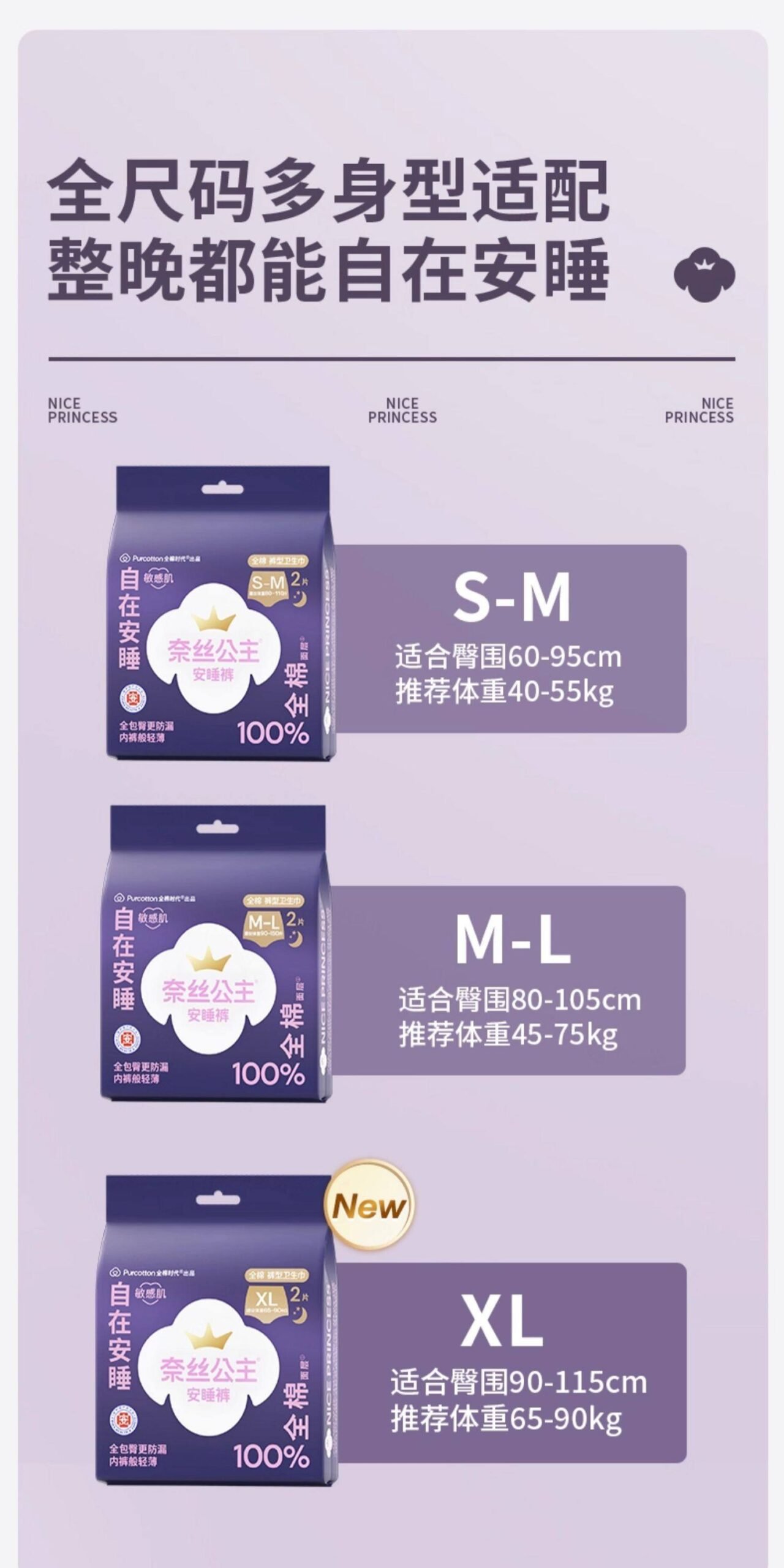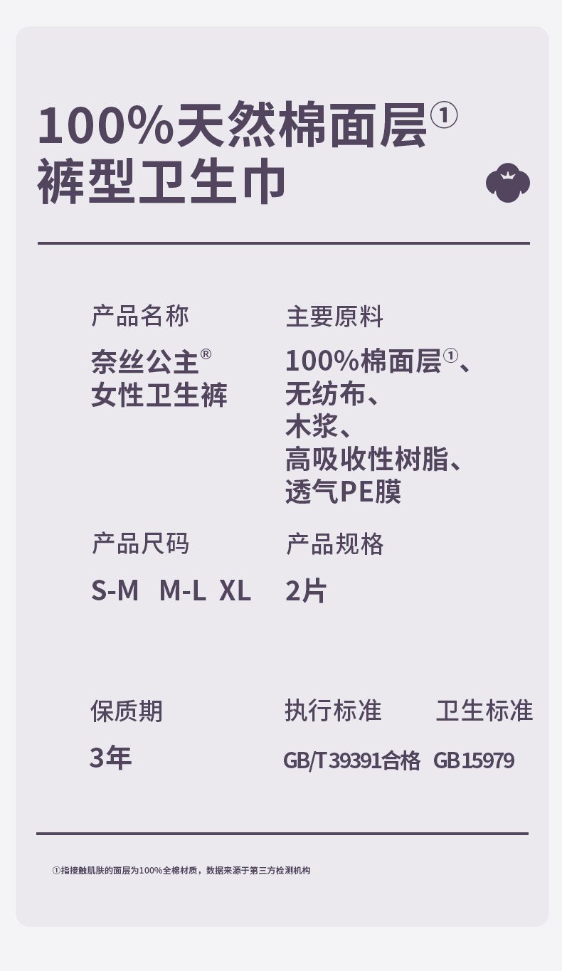 【先试后买】全棉时代奈丝公主裤型卫生巾夜用安心裤安睡裤2条 数量