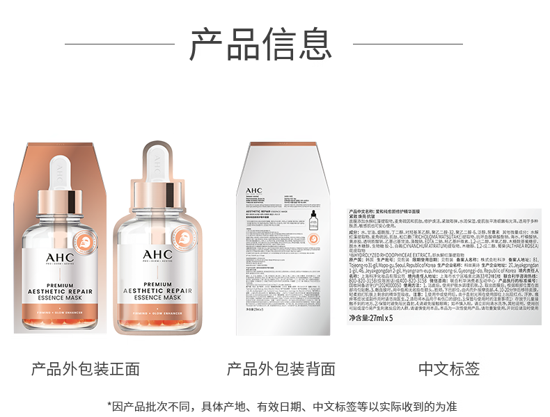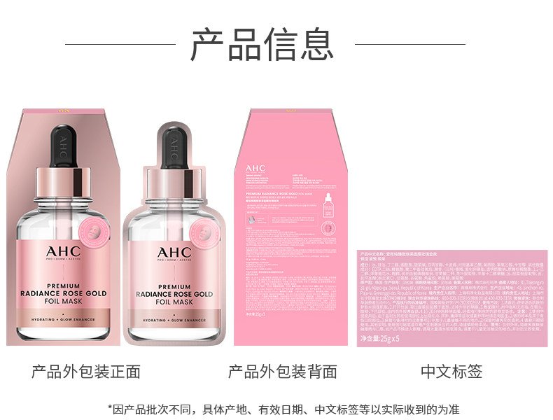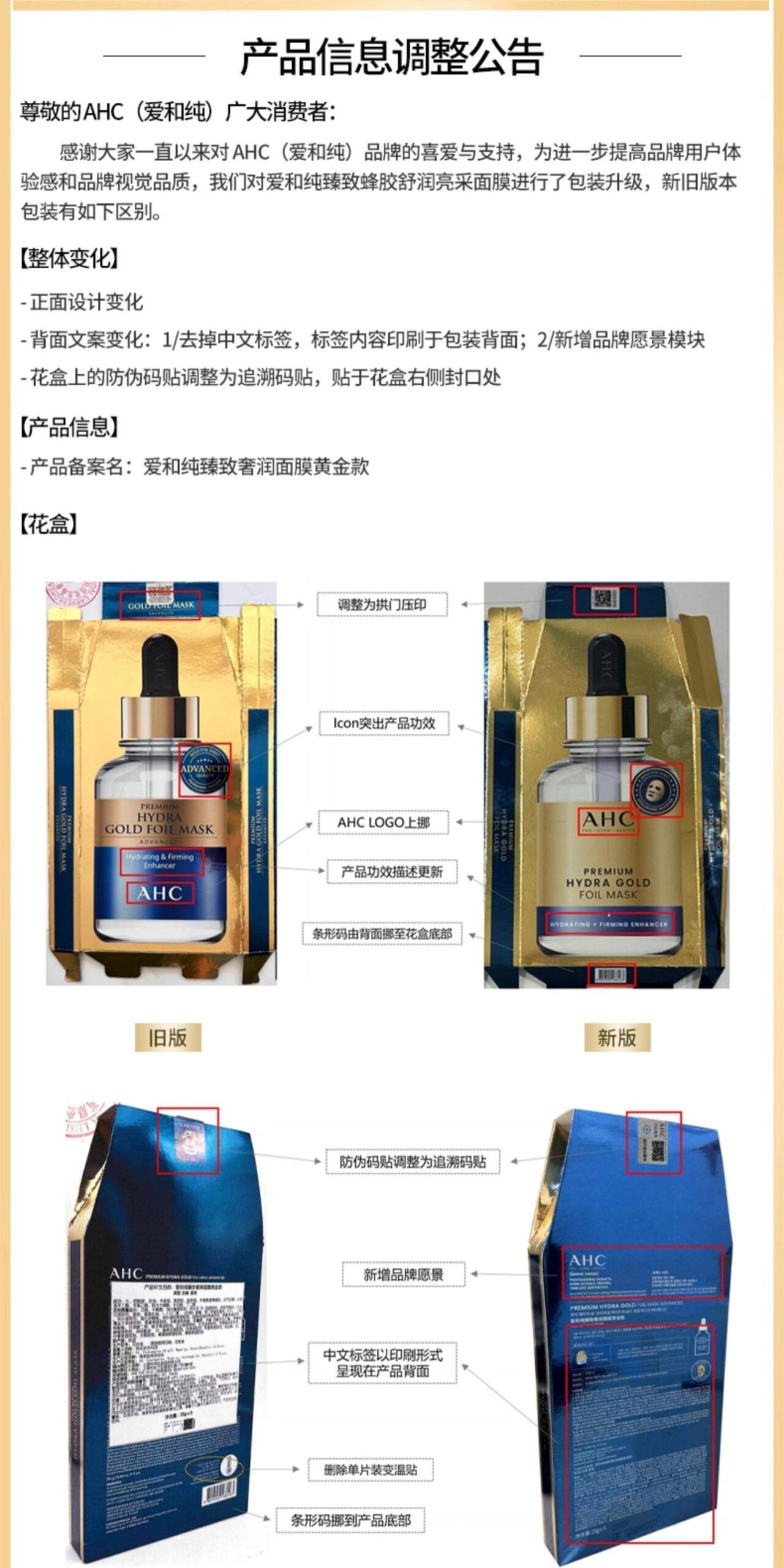 【加入购物车下单】AHC官方旗舰店黄金面膜玫瑰金面膜补水保湿