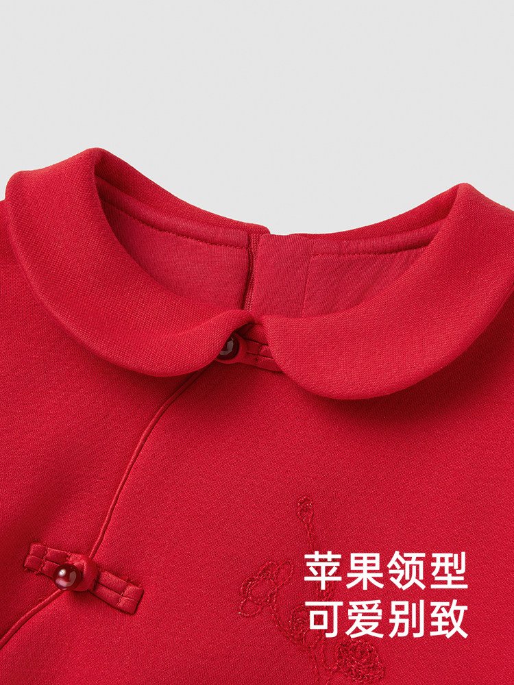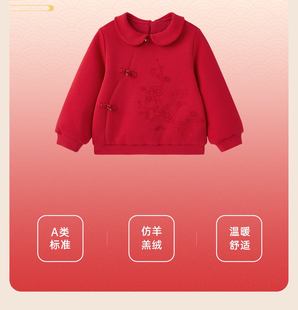 【商场同款】英氏儿童卫衣加绒春秋女童国风纯棉红色新年拜年服 数量