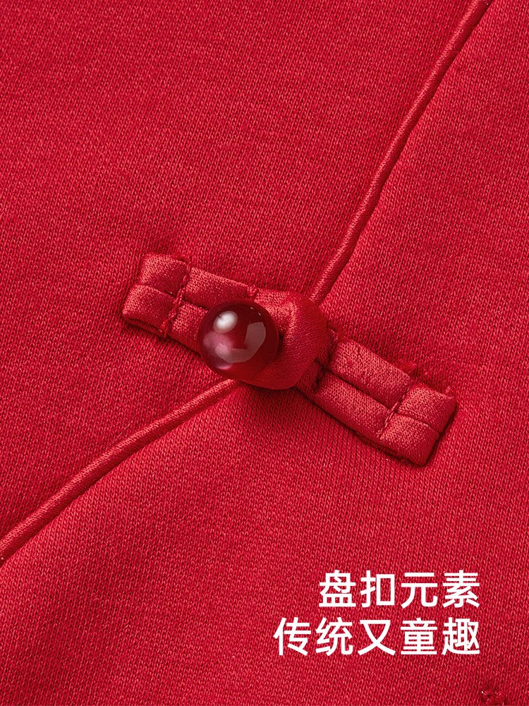 【商场同款】英氏儿童卫衣加绒春秋女童国风纯棉红色新年拜年服