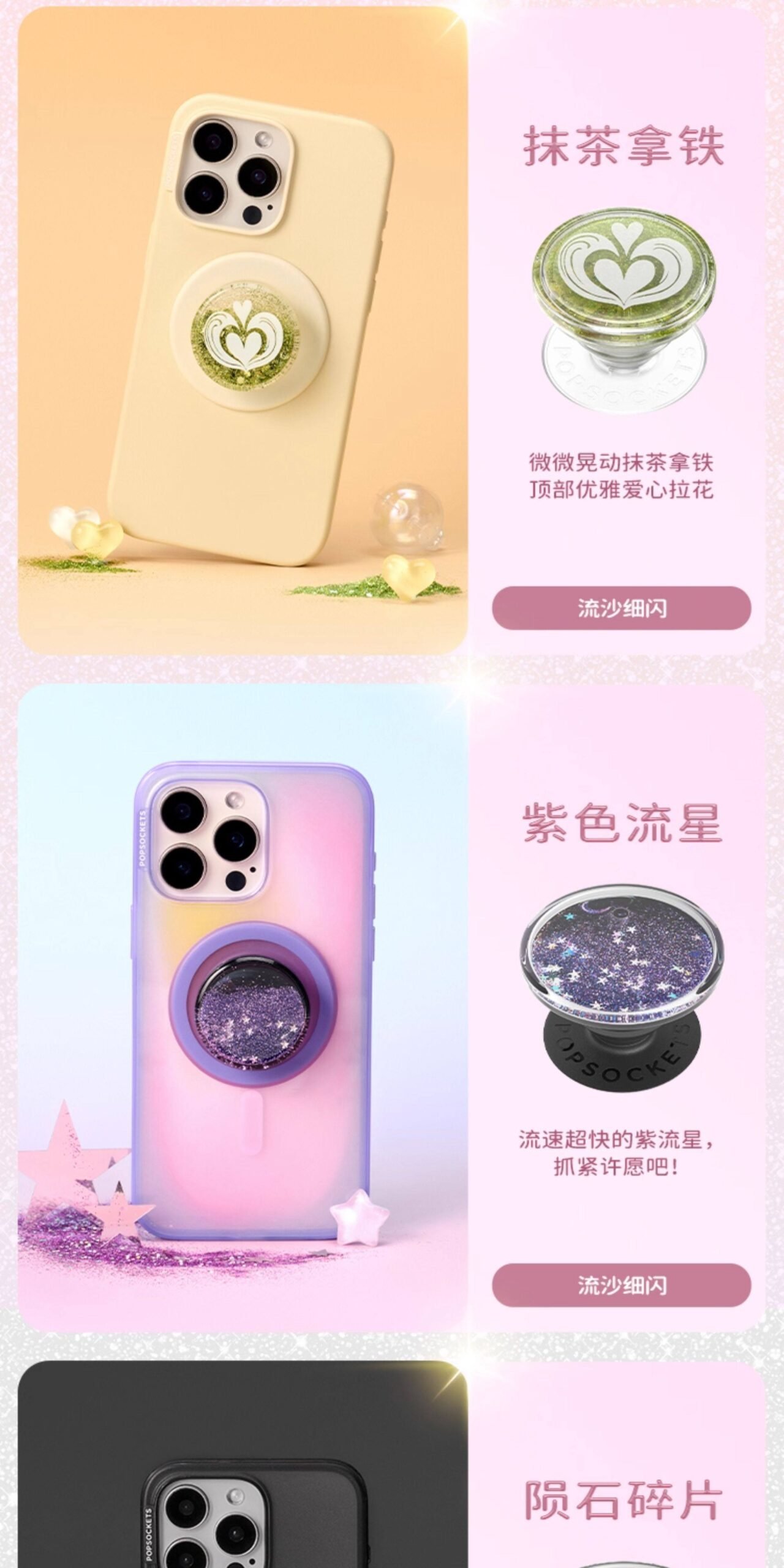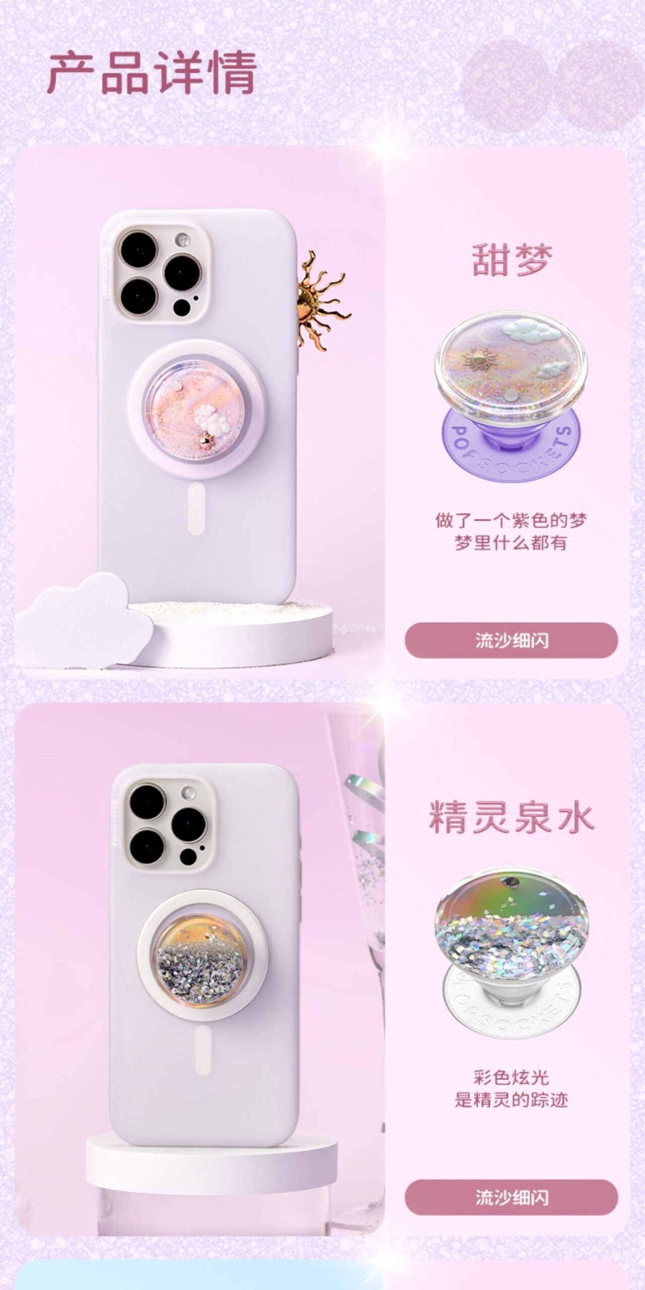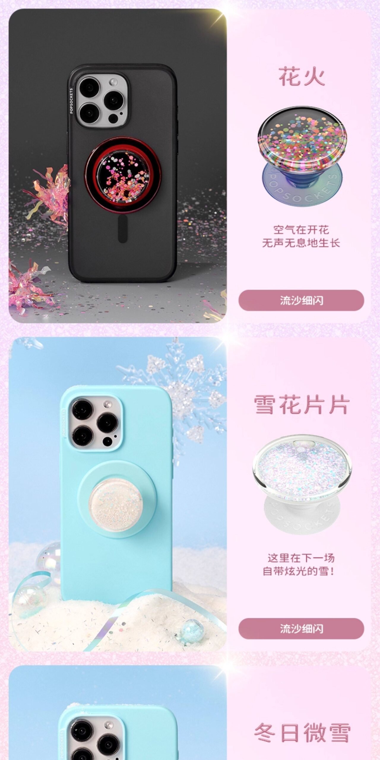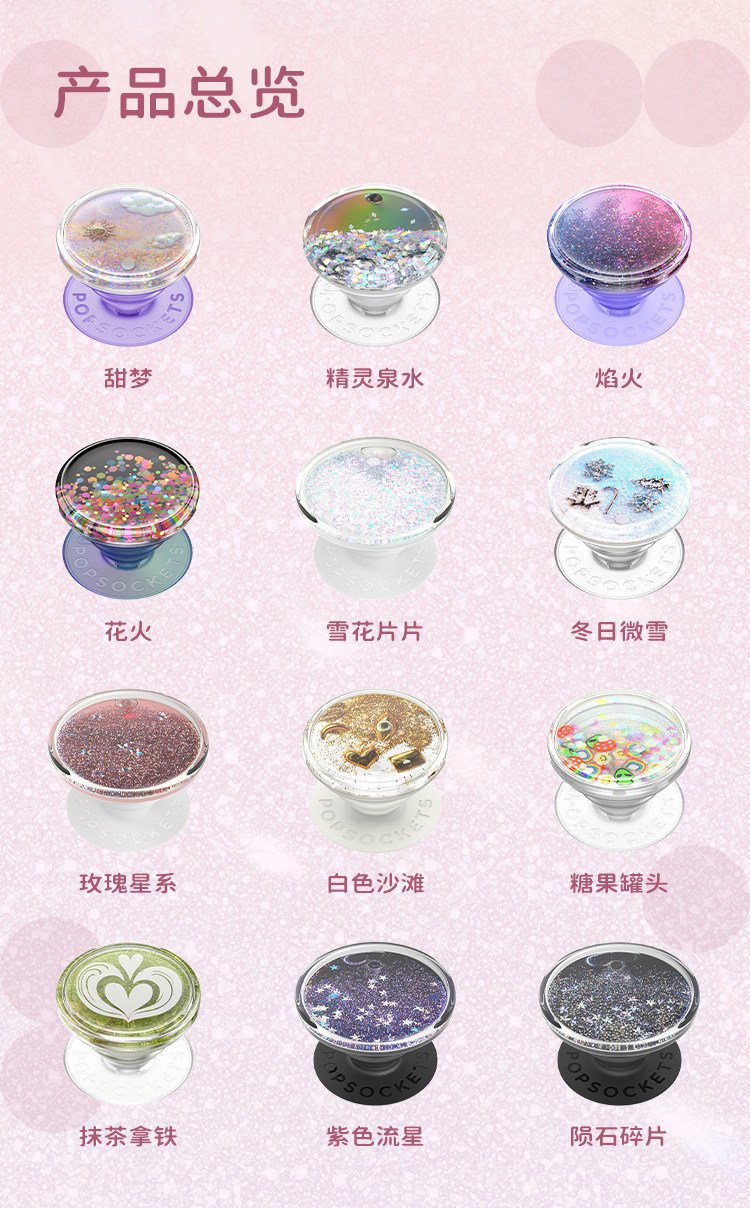 【流沙】PopSockets泡泡骚手机支架气囊伸缩流沙动态细闪 一直动的 甜梦 精灵泉水 雪花片片 陨石碎片 数量