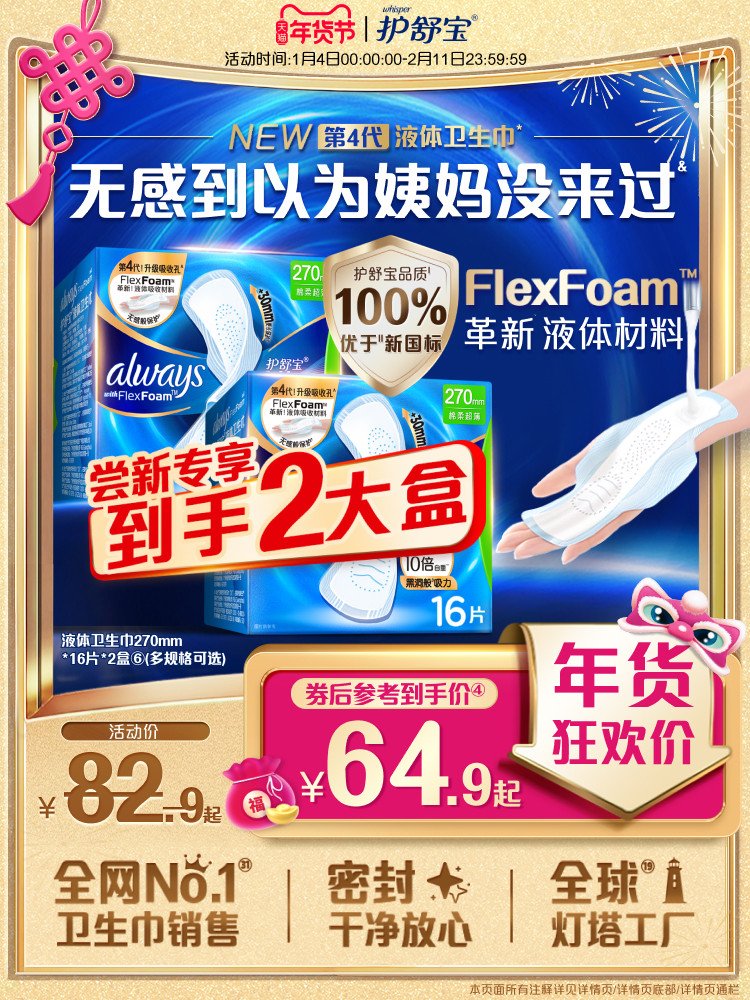 【顶配无感】护舒宝液体卫生巾日用量多组合超薄姨妈巾官方旗舰店