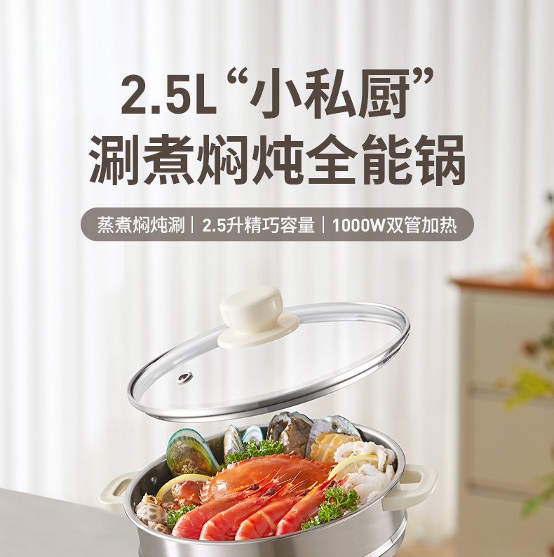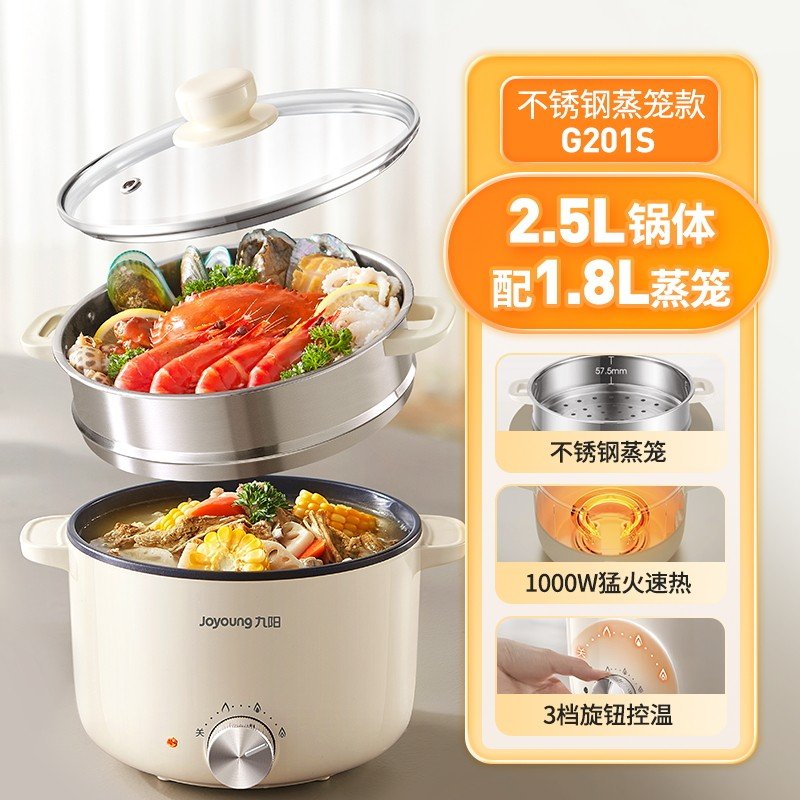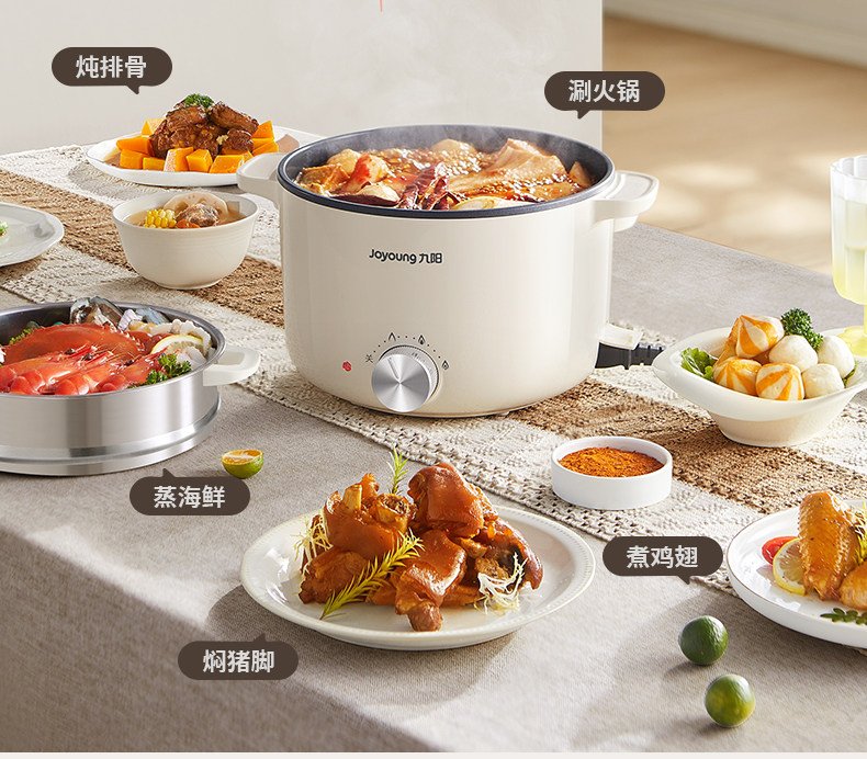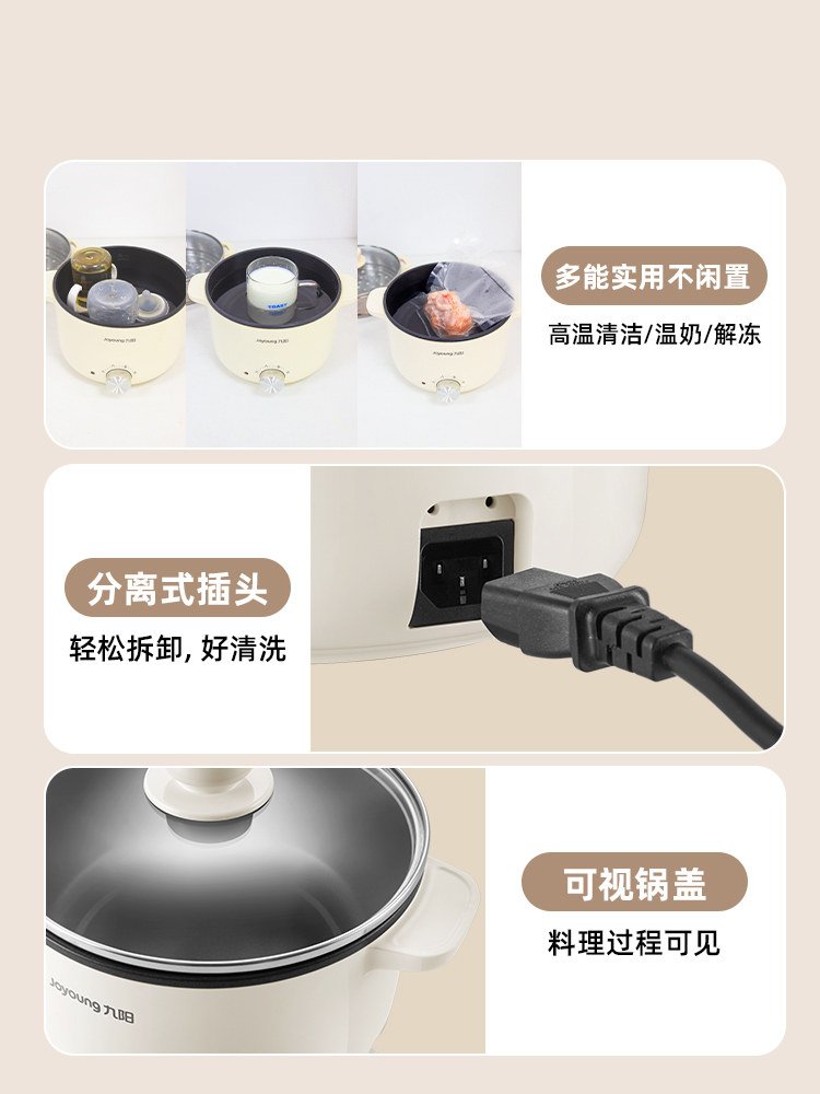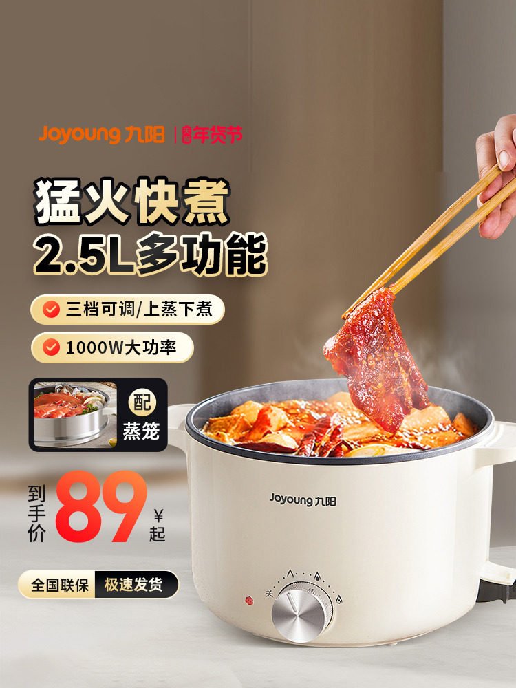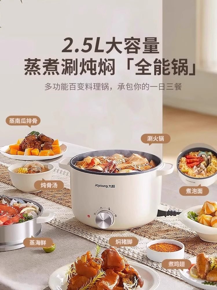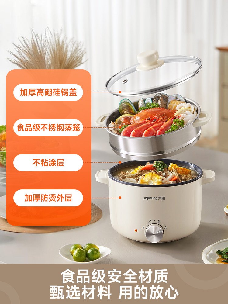 九阳电煮锅多功能家用型一体电火锅宿舍学生炒蒸煮泡面不沾小电锅