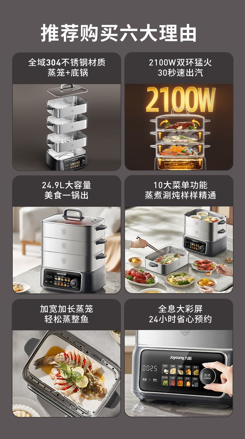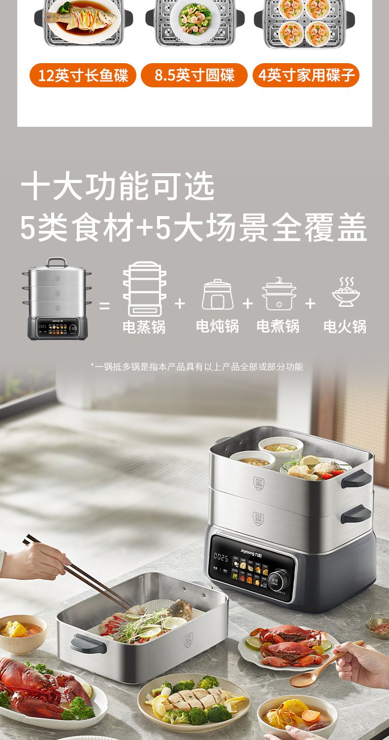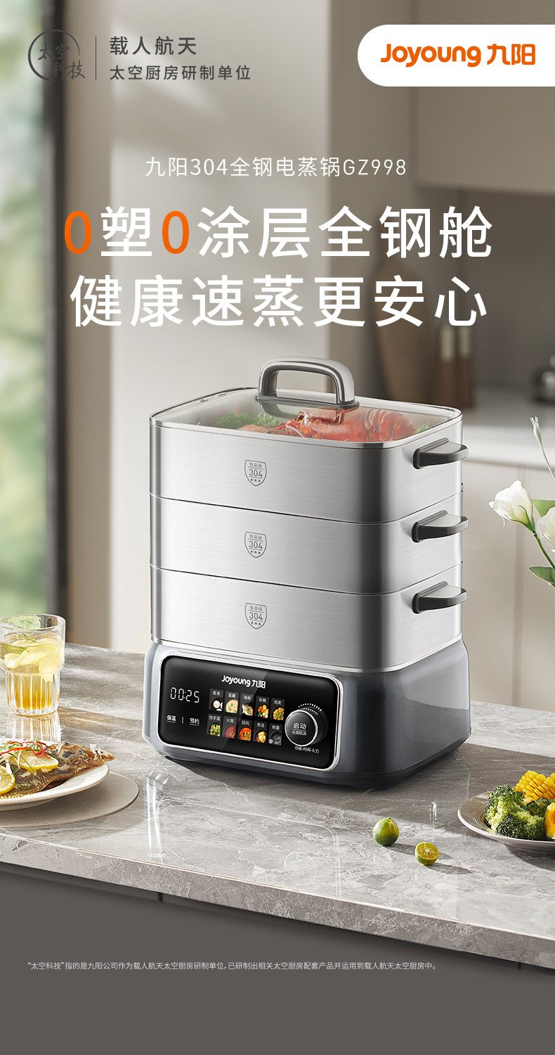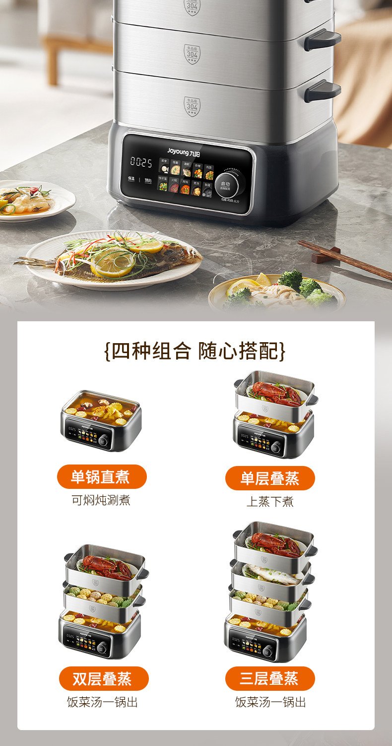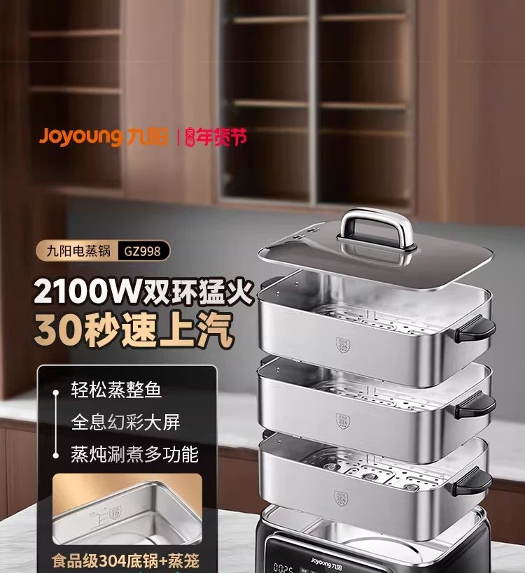 九阳电蒸锅多功能家用三层304不锈钢蒸煮炖一体锅2025新款正品