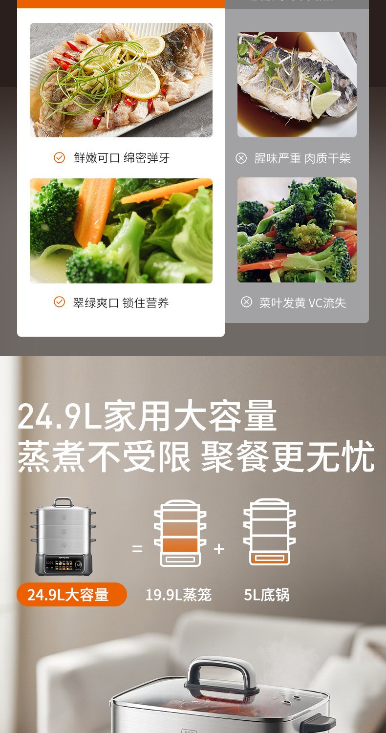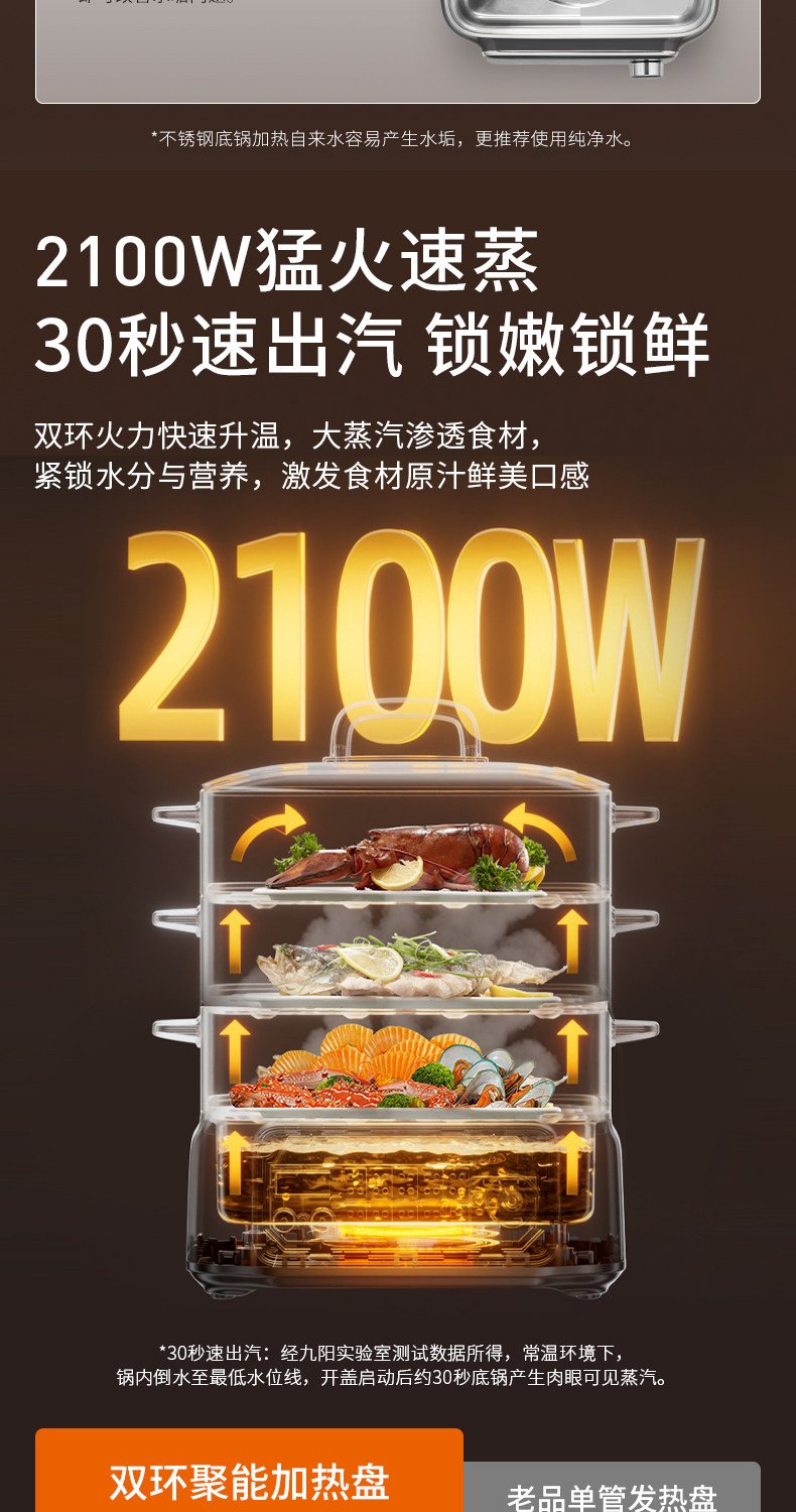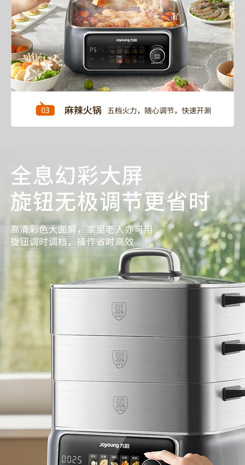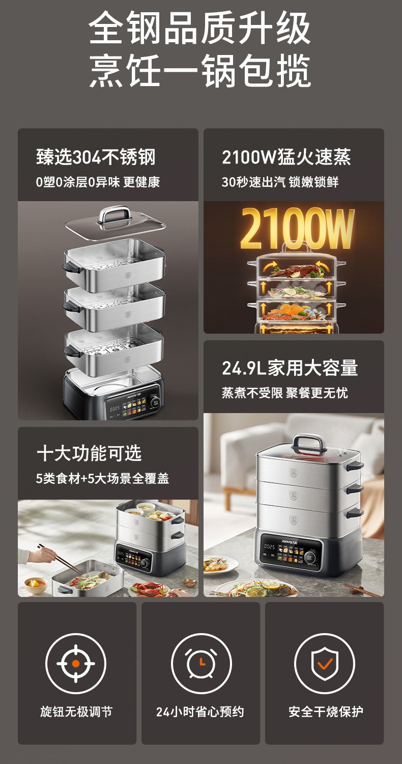 九阳电蒸锅多功能家用三层304不锈钢蒸煮炖一体锅2025新款正品