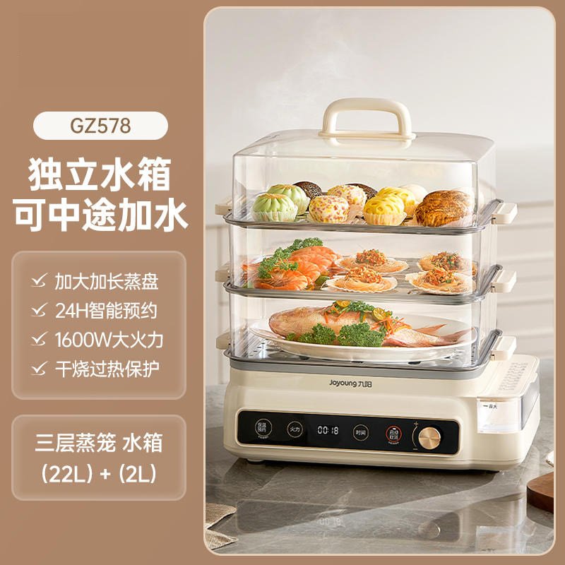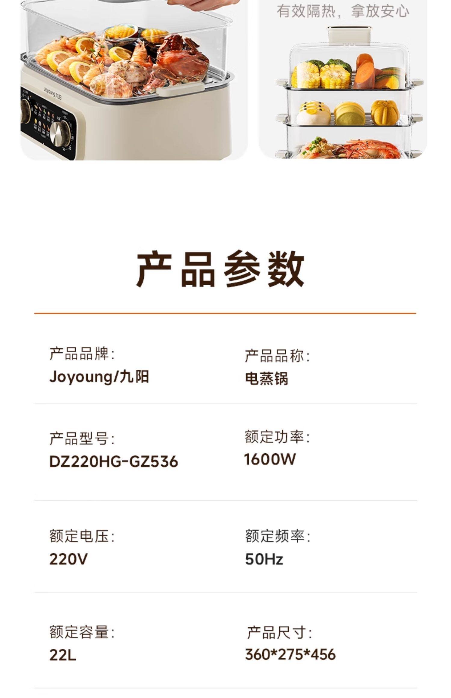 九阳电蒸锅家用多功能三层蒸煮炖一体锅多层早餐机蒸箱大容量 数量